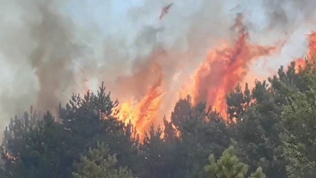 Kastamonu Cide ilçesi’ne bağlı Soğucak köyü yakınlarında çıkan orman yangınına havadan ve karadan müdahale ediliyor.