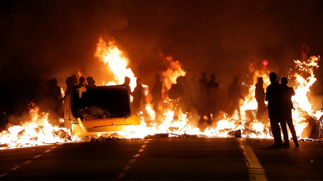 Katalan göstericiler Barcelona sokaklarını ateşe verdi