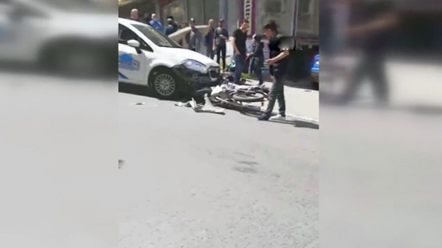 İstanbul'da motosiklet ile otomobil kafa kafaya çarpıştı. Kazada hafif yara alan motosiklet sürücüsü, canını bırakıp motosikletinin derdine düştü.