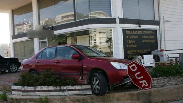 Antalya'da bir otomobilin kavşakta çarptığı aracın sürücüsü, kazanın şokuyla fren yerine gaza basınca önce başka bir araca, ardından da kaldırıma çıkıp bir tabelaya çarptı.