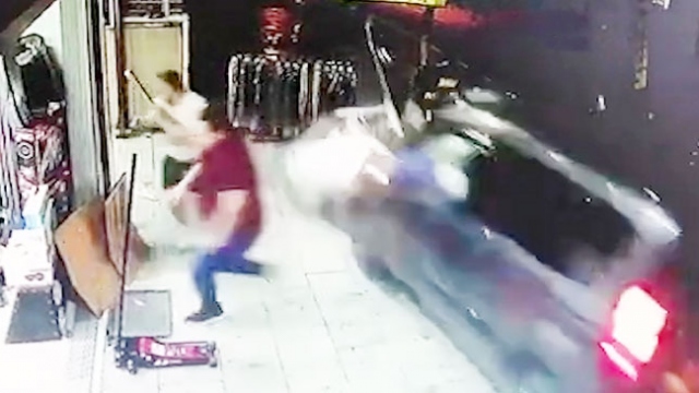 İstanbul Bahçelievler'de, otomobilin farını değiştirmeye çalışan 2 kişi, kontrolden çıkarak kendilerine doğru hızla gelen otomobilden kaçarak kurtuldu.