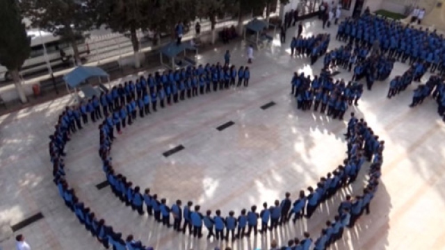 Kilis 15 Temmuz Lisesi öğrencileri, Zeytin Dalı Harekatı'na destek vermek için ay yıldız şekli oluşturarak komando yemini etti.