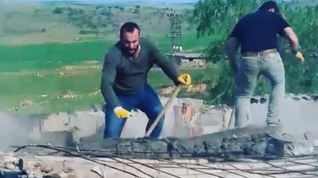 Diyarbakır'da 2 kişi, yenilemek için betonlarını kırmaya çalıştıkları evlerinin çatısının çökmesiyle yere çakıldı. Üzerlerine beton da düşen yaralılar, hastaneye kaldırıldı. Tedaviye alınan K.K. ile M.S.A.'nın sağlık durumunun iyi olduğu belirtildi. İkilinin balyozlarla betonları kırması ve çatının çökme anı ise cep telefonu kamerasına anbean yansıdı.