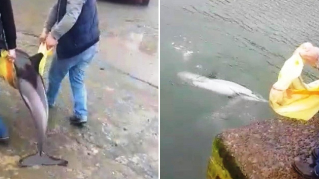 Ordu'nun Fatsa ilçesinde kıyıya vuran bir yunusu gören vatandaşlar, onu denizle yeniden buluşturdu.