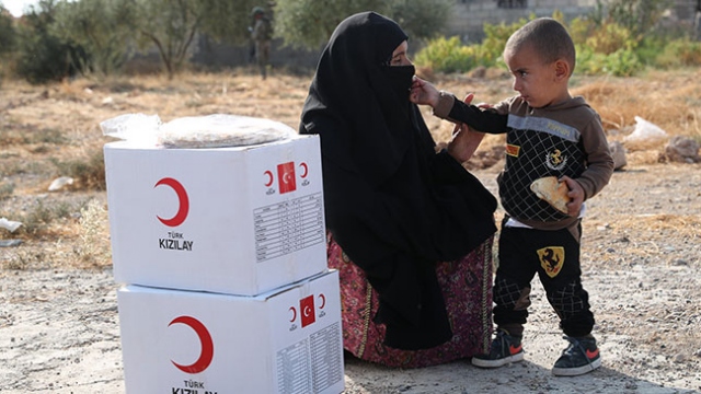 Terörden temizlenen Tel Abyad ve Rasulayn kentlerinde insani yardımlarına devam eden Türk Kızılay, son olarak yeniden Tel Abyad kentine yardım ulaştırdı.