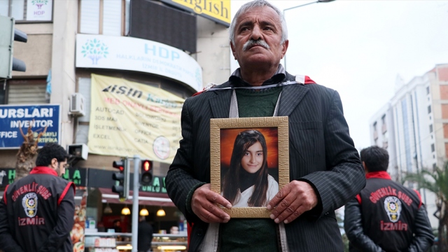 Terör örgütü PKK'nın dağa kaçırdığı kızına kavuşabilmek adına Diyarbakır HDP İl Başkanlığı önündeki oturma eylemine katılan ancak sağlık problemleri nedeniyle İzmir'e dönen Mehmet Laçin, HDP İl Başkanlığı önünde nöbet tutmaya başladı.