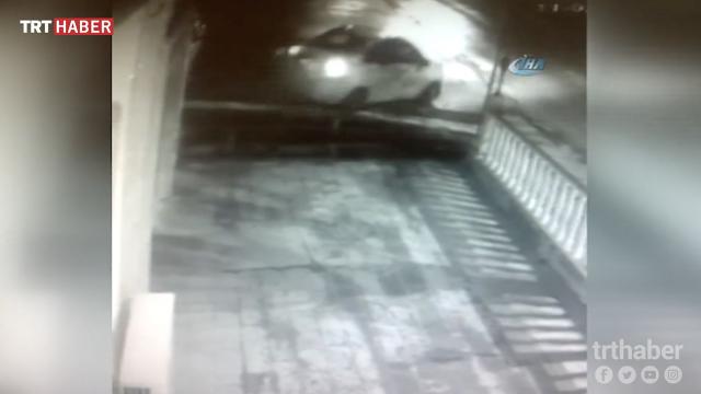 Otomobiliyle makas atarken kaldırıma çarpıp ters döndü
