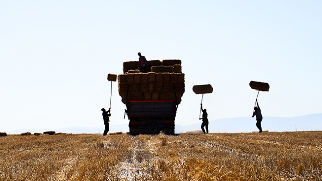 Konya Ovası'nda sabah 05.00'te başlayıp akşamın karanlığına kadar 40 derece sıcakta saman balyası yapan işçiler ekmek parası için ter döküyor.