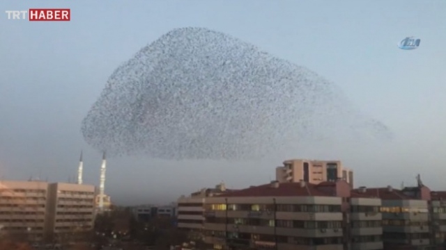Konya semalarında sürüler halinde uçan sığırcık kuşlarının sergiledikleri hareketler görsel bir şölen sundu.