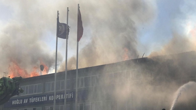Konya'nın Beyşehir ilçesinde av tüfeği üretimi yapılan silah fabrikasının çatısında yangın çıktı.