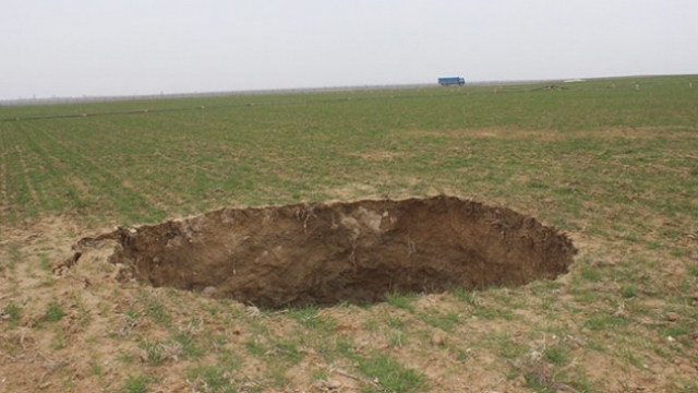 Konya'nın Karapınar ilçesinde bir vatandaşın buğday ekili tarlasında meydana gelen obruğu bölgede koyun otlatan çobanlar gördü.