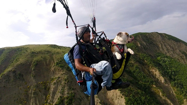 Tekirdağ Yamaç Paraşüt Kulübü'nde tandem pilotu olarak görev yapan Ali Sıralı, "Jack" isimli köpeğiyle yamaç paraşütüyle uçuş yaptı.