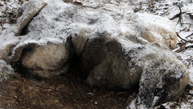 Köpek yavruları karda birbirlerine sarılarak dondu