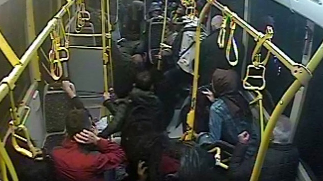 İstanbul'da özel halk otobüsü önce U dönüşü yapan otomobile, ardından da E-5 üzerindeki köprünün ayağına çarptı. Olay otobüsün güvenlik kameralarına yansıdı.