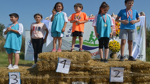 Kırklareli'nin Babaeski ilçesinde 30 Ağustos Zafer Bayramı dolayısıyla düzenlenen koşu öncesi terlikle ısınma hareketleri yapan 6 yaşındaki Hayalsu Demirbay, yarış sırasında terliklerini çıkarak bitiş çizgisine ulaştı.