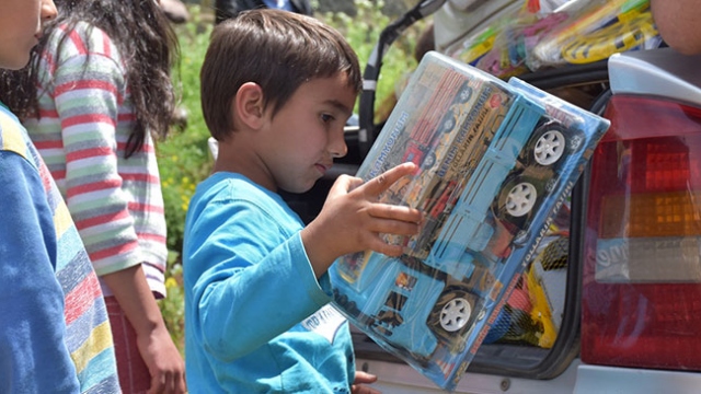 Kars'ta bir grup gönüllü, sosyal medya üzerinden yürüttükleri kampanya ile köy çocuklarına oyuncak dağıtıyor.