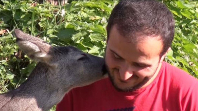 Trabzon'da yaşayan 23 yaşındaki Ferdi Baykan, her gün köye inen karaca yavrusunu sütle besliyor. Çok sevdiği karacaya "Bıdış" ismini verdi.