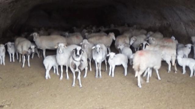 Köylüler küçükbaş hayvanlarını mağarada besliyor