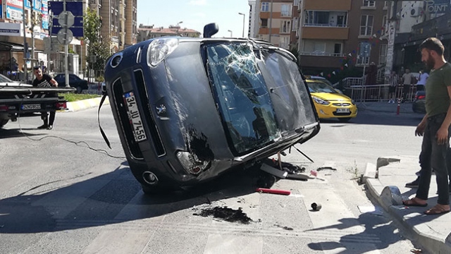 İstanbul Esenyurt'ta aracıyla kurban kesmeye giden Ergün Şimşek adlı vatandaş kavşakta başka bir aracın kendisine çarpmasıyla takla attı. Yaşanan kaza anı güvenlik kamerasına yansıdı.