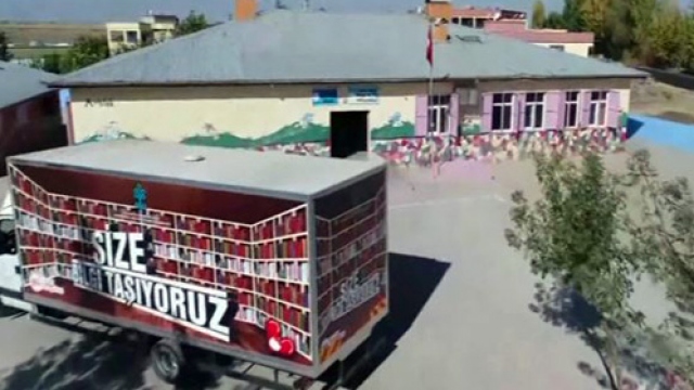Kütüphaneye ulaşamayan köydeki öğrencilere kütüphaneyi götürüyorlar