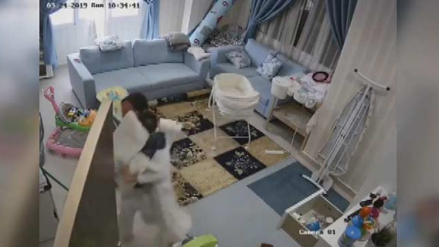 Kuveyt'te bir dadı tavan çökmeden saniyeler önce bebeği kurtardı