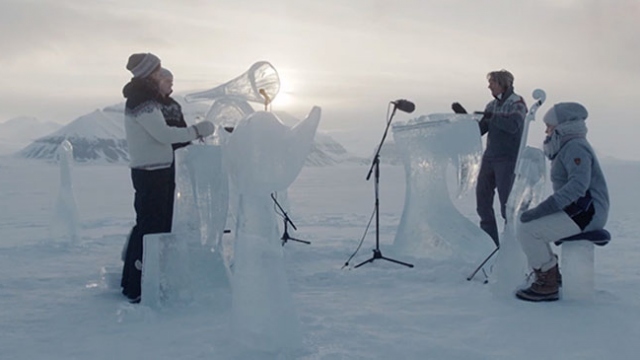 Buzulların hızla erimesine dikkat çekmek isteyen bir grup müzisyen buzdan yaptıkları enstrümanlarla Kuzey Kutbu'nda konser verdi.
