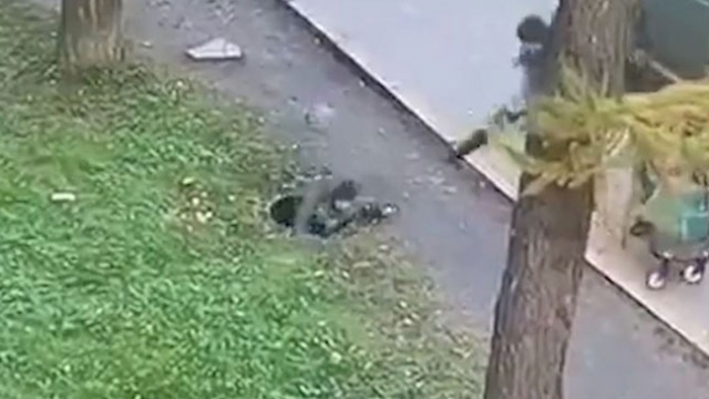Rusya’da annesiyle birlikte parkta yürüyen çocuk rögar kapağı ters dönünce kuyuya düştü. Anne, çukura düşen çocuğunu saniyeler içerisinde kurtardı.