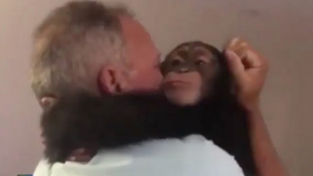 ABD'de Limbani isimli şempanze, hayatını kurtaran çifti görünce sevinçten havaya uçuyor.