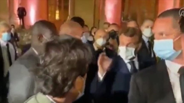 Macron'un gazeteciyi azarladığı anlar kamerada
