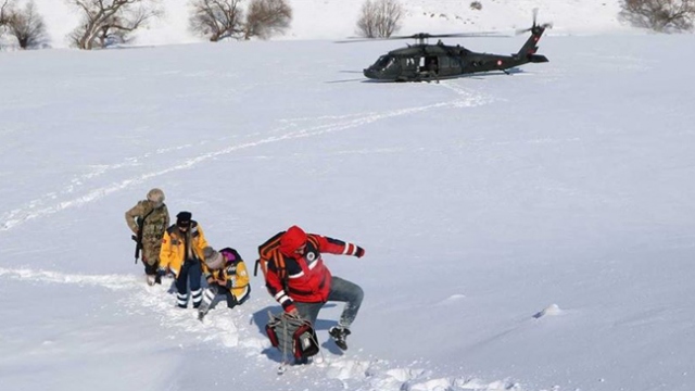Erzurum'da yoğun kar yağışı ve tipi nedeniyle kırsaldaki evinde mahsur kalan hastayı jandarma ekipleri helikopterle hastaneye yetiştirdi.