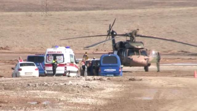 Malatya'da askeri helikopter şehir mezarlığındaki boş alana indi