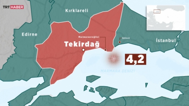 Marmara Denizi'nde Tekirdağ'ın Marmaraereğlisi ilçesi yakınlarında saat 16.38'de 4,2 büyüklüğünde deprem meydana geldi. Deprem İstanbul'da da hissedildi.