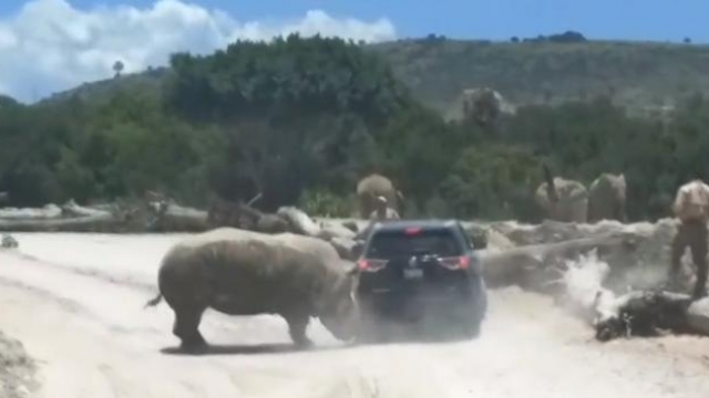 Meksika Puebla'da bir gergedan, safari parkını gezmeye gelen bir ailenin aracına saldırdı. Ziyaretçiler saldırıyı yara almadan atlattı.