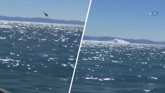 Meksika’da içinde 12 kişi bulunan helikopter denize çakıldı. Olay anı saniye saniye kameraya yansıdı.