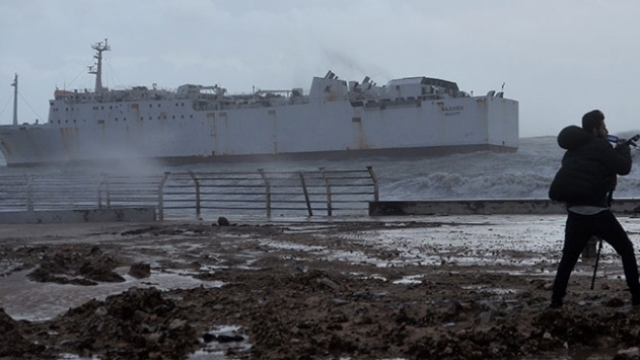 Mersin'de fırtına nedeniyle sürüklenen Lübnan bandıralı 'Wardeh' isimli kargo gemisi, karaya oturdu.