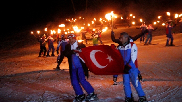 Meşaleli kayakçılar Uludağ’ı aydınlattı