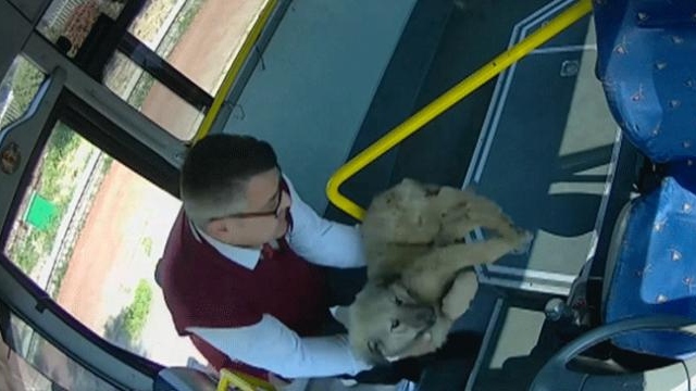 Midibüs şoförünün yaralı köpeği yaşatma çabası güvenlik kamerasında