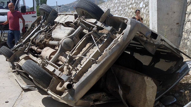 Minibüs 4 metreden uçtu, sürücü yara almadan kurtuldu