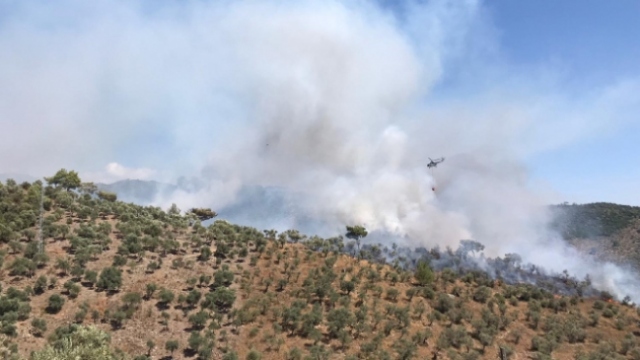 Muğla'nın Milas ilçesinde zeytinlik alanda yangın çıktı. Rüzgarın etkisiyle ormanlık alana sıçrayan yangın, kontrol altına alınmaya çalışılıyor.