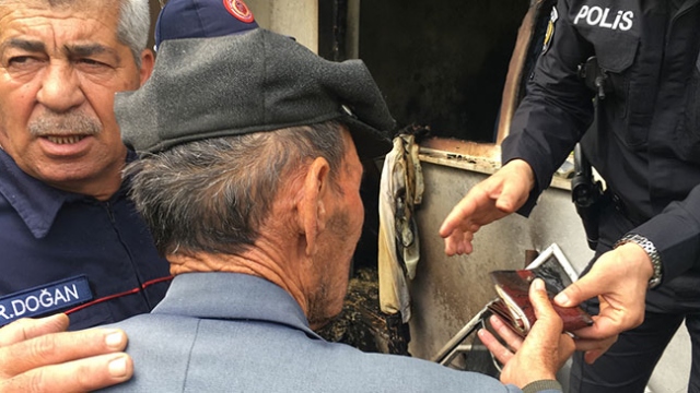 Antalya Gazipaşa'da çıkan yangında evi kullanılamaz hale gelen 90 yaşındaki Mustafa Güzel'in alevlerin arasından cüzdanının kurtarılması için verdiği mücadele duygulandırdı.
