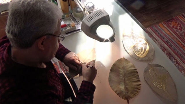 Mustafa Er 21 yıldır bitki yapraklarını sanat eserlerine çeviriyor