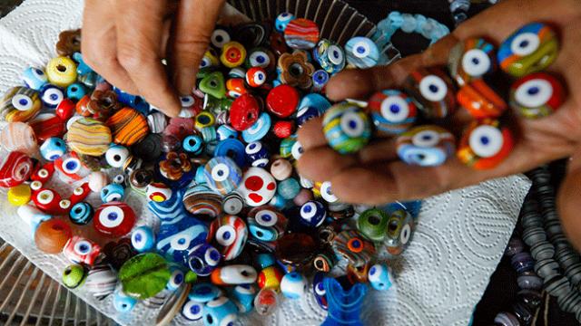 İzmir Kemalpaşa Nazarköy'de 43 yıldır camdan nazar boncuğu yapan ve Türkiye'nin "Yaşayan İnsan Hazinesi" listesinde yer alan Mahmut Sür, mesleğini ilk günkü aşkla yapıyor.