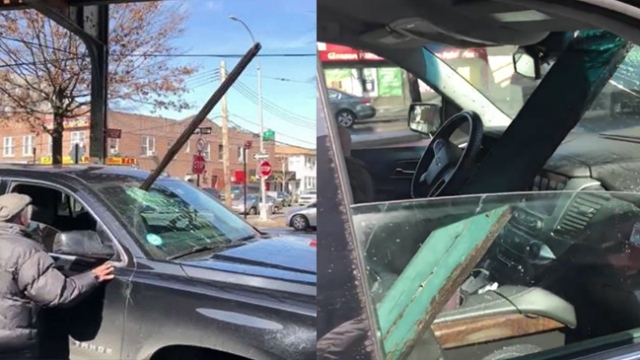 ABD'nin New York şehrinde bir Uber sürücüsünün arabasına metro raylarından düştüğü açıklanan ahşap kiriş saplandı.