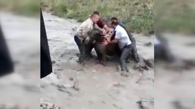 Niğde'de sele kapılan eşeği vatandaşlar kurtardı