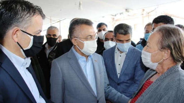 Cumhurbaşkanı Yardımcısı Fuat Oktay ile Tarım ve Orman Bakanı Bekir Pakdemirli, tsunaminin vurduğu Sığacık’ı ziyaret etti. Tsunamide yaşadıklarını anlatan kadın işletmeciyi dinleyen Oktay ve Pakdemirli, gözyaşları arasında kalan kadını teselli etti.
