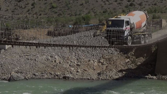 Çoruh Nehri üzerindeki çelik halatlı ahşap köprüden tonlarca ağırlıktaki araçlarla geçmek zorunda kalan şoförler, her gün korku dolu anlar yaşıyor.