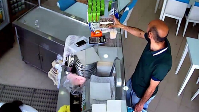 Önce sadaka kutusunu çaldı; sonra müşteri gibi sipariş verdi