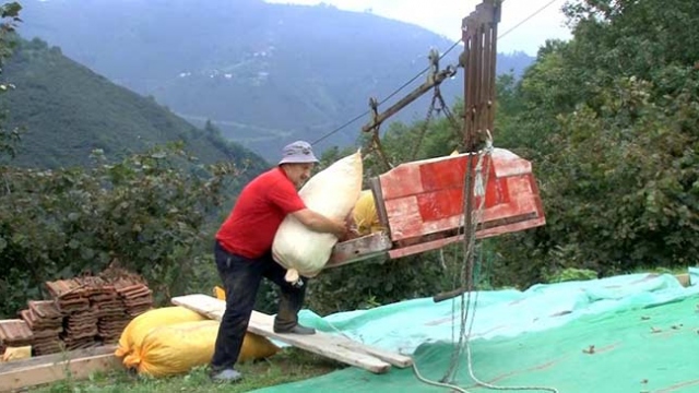 Ordu'da çiftçi Mustafa Yıldız, evi ile fındık arazisi arasında yol olmaması nedeniyle 1 kilometre uzunluğunda teleferik kurdu. Böylece hasat edilen fındıklar dakikalar içerisinde harmana ulaşıyor.