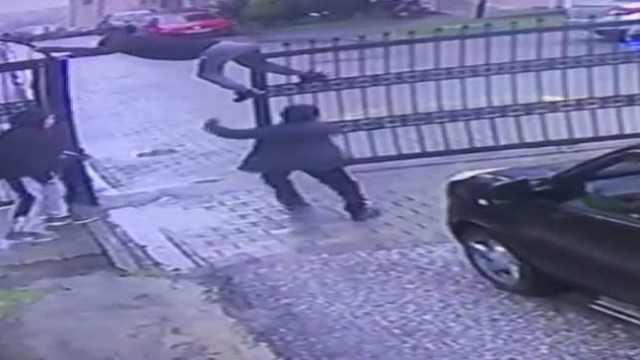 Ordu'da atlamaya çalıştığı demir kapıda asılı kalan çocuğun yaşadığı zor anlar güvenlik kamerasına yansıdı.