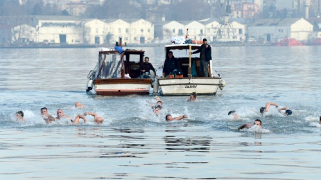 Soğuğa aldırış etmeyen Ortodoks gençler, haçları çıkarmak için, Haliç'te ve İzmir Körfezi'nde soğuk suya atladı.